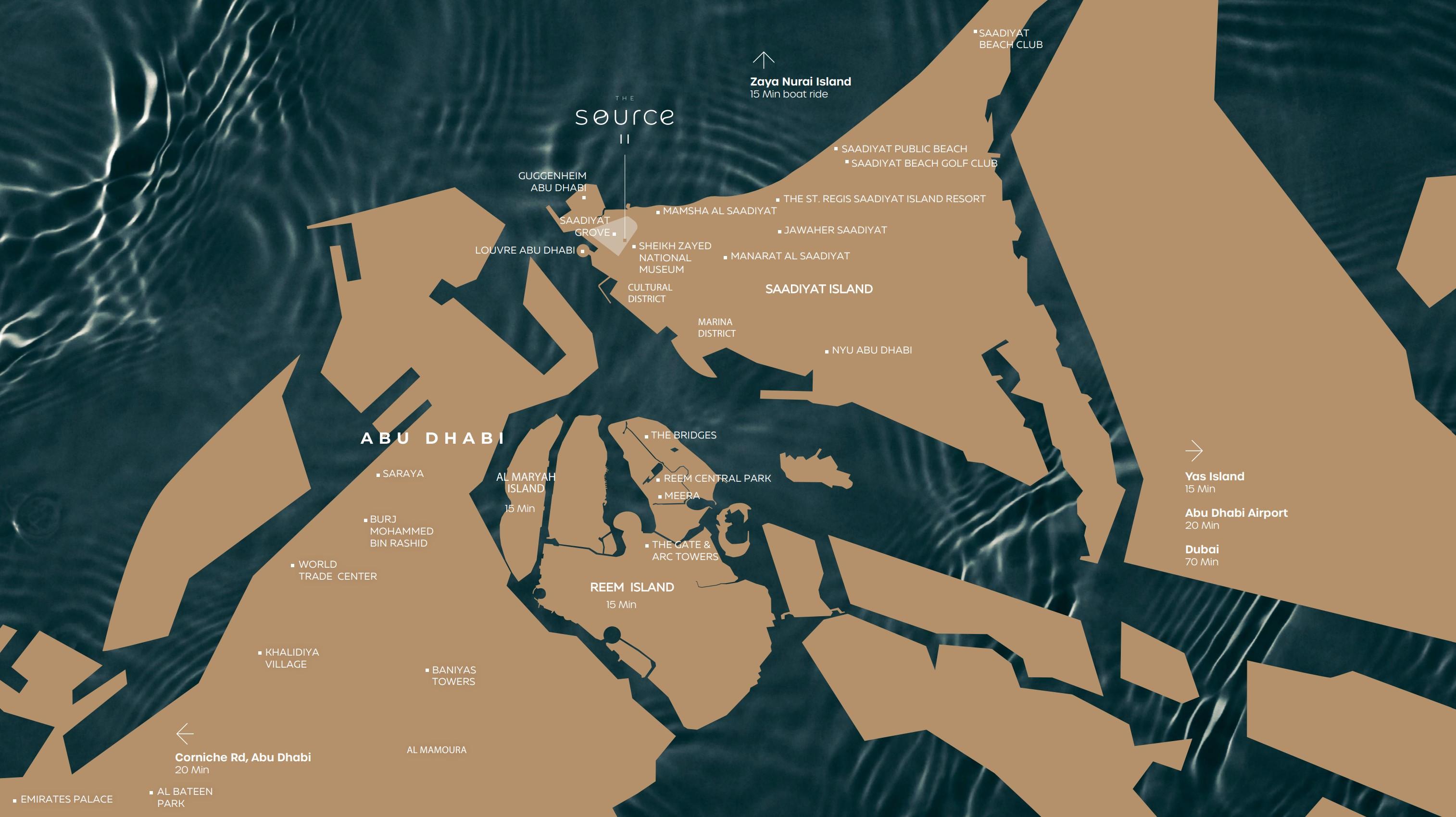 Situated in Saadiyat Grove’s Cultural District on Saadiyat Island, Abu Dhabi. Steps away from landmarks like Louvre Abu Dhabi, Zayed National Museum, and Soul Beach.